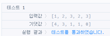 - 반환되는 배열의 값 : [4, 2, 1, 1, 0]